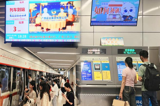 联合广西广播电视台精心制作《“盐”续传承》系列科普动画片,生动科普碘缺乏病危害及科学用盐知识,并在南宁地铁1-5号线车载电视每日循环展播,形成流动的科普课堂。自2025年5月全渠道展播以来,累计触达客流超980万人次,为巩固防治成果厚植群众基础。